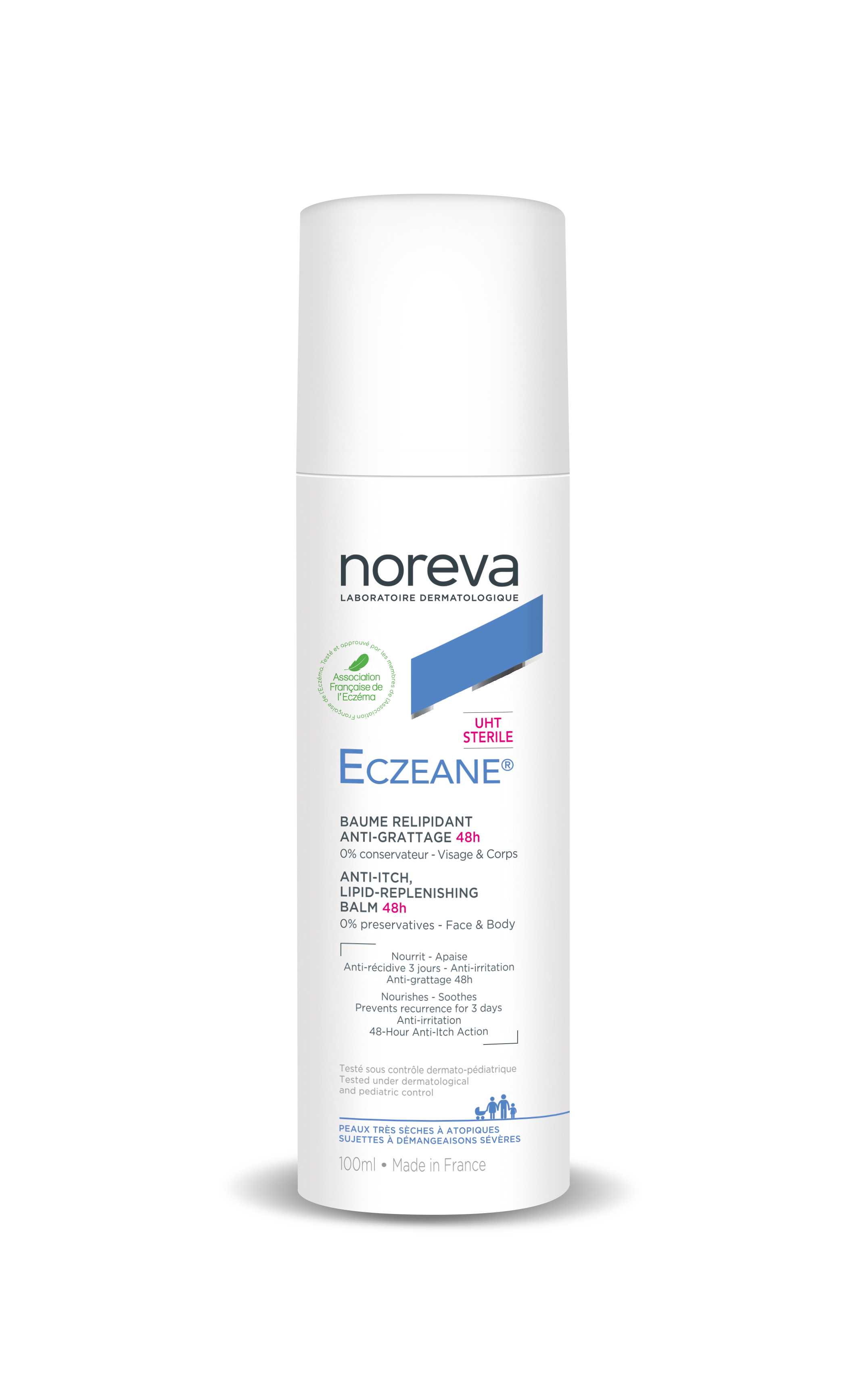 Neurodermitis ist eine entzündliche Hauterkrankung, die durch extreme Trockenheit der Haut und rote, oft mit kleinen Bläschen bedeckte Flecken gekennzeichnet ist, die starken Juckreiz verursachen. Gutartig und nicht ansteckend, ist die atopische Dermatitis eine chronische Erkrankung, die zu Schüben von Ekzemen führt: Diese akuten Phasen haben einen erheblichen Einfluss auf die Lebensqualität und führen oft zu Schlaflosigkeit. Da das Wohlbefinden der Haut in jeder Lebensphase von wesentlicher Bedeutung ist, haben die Laboratoires Noreva Eczeane UHT Anti-Juckreiz Balsam entwickelt, das erste dermokosmetische Produkt der neuen Generation mit 0% Konservierungsstoffen, 3-Tage-Rückfallschutz und 48 Stunden Anti-Juckreiz-Wirkung, das speziell für sehr trockene, zu atopischem Ekzem und Juckreiz neigende Haut bestimmt ist und von der ersten Anwendung an täglichen Komfort, Schutz und Wohlbefinden bietet.